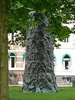 - ↑ La obra de Diertens consta de siete nidos de aves de bronce con las pertenencias personales de los residentes, incluyendo un coche de juguete, un anillo de un ser querido fallecido, un mechón de pelo. Los nidos colgando de los árboles en el jardín de los siete Hommes. El jardín de Hommes lleva el nombre del comerciante de té y café Hommes , que en el siglo XIX tuvo el mayor jardín de Groninga.
