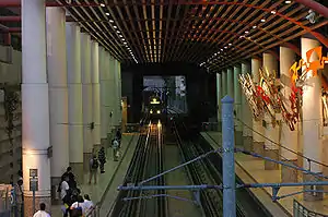 - Donde más de una línea sirve a la estación, las líneas están ordenadas en orden a su inauguración.