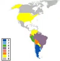 NOTA: Se incluyen a todas las selecciones que han participado en la Copa América.