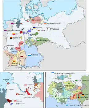 Algunos de estos Estados obtuvieron su soberanía como consecuencia de la disolución del Sacro Imperio Romano Germánico. Otros fueron creados como Estados soberanos después del Congreso de Viena en 1815. Los territorios no eran necesariamente contiguos, como Baviera, u Oldenburgo —muchos existían en varias partes (enclaves y exclaves) como resultado de adquisiciones históricas o, en varios casos, debido a divisiones dinásticas—.