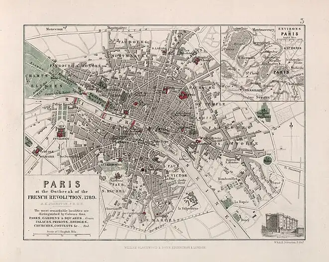 Representa el París de 1789; mapa elaborado en 1852 | Archibald Alison y Alexander Keith Johnston[9] |