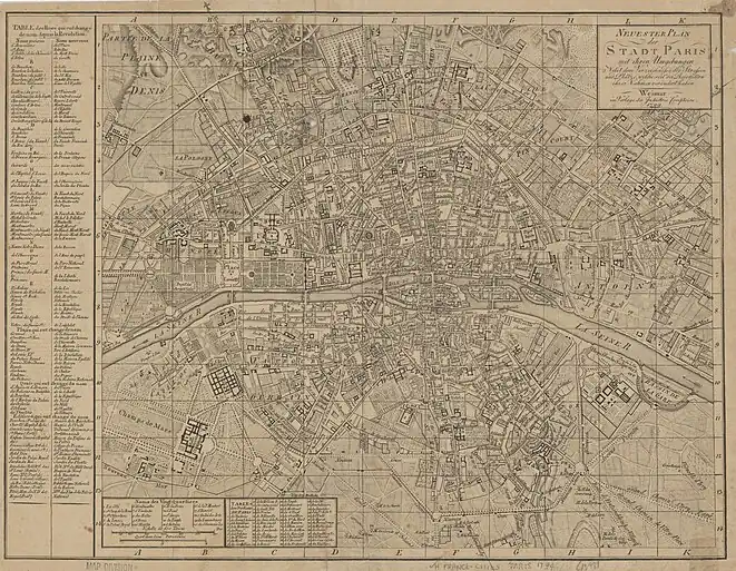 - «Neuester Plan der Stadt Paris mit ihren Umgebungen : nebst dem Verzeichnisse der Strassen und Plätze, welche seit der Revolution ihre Nahmen verändert haben in EarthWorks». earthworks.stanford.edu. Consultado el 24 de diciembre de 2023.