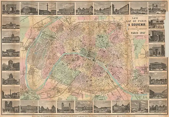 - Clérot, Victor (1867), New map of Paris : a souvenir of the universal exhibition at Paris, 1867 (en inglés), Paris: Imp. Goyer, consultado el 24 de diciembre de 2023.
