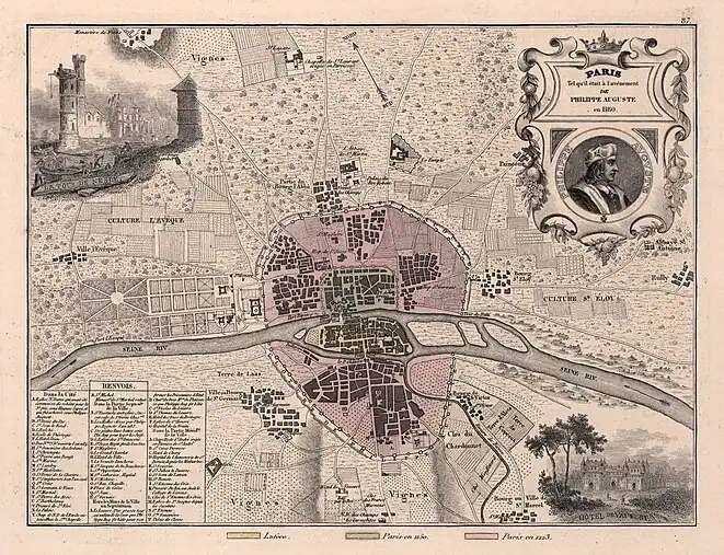 Representa el París de 1180; mapa elaborado en 1869[1] | A. Vuillemin and J. Migeon |