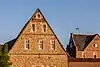 | Hastial | Parte superior triangular de la pared de un edificio usado para disponer las pendientes de la cubierta, que se apoyan en él. | ![]() |