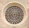 | Rosetón | Ventana circular calada, dotada de vidrieras, cuya tracería se dispone generalmente de forma radial. | ![]() |