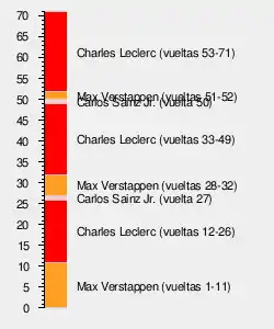 | 10 | 14 | 70 | +1 vuelta | 19 | 1 | ||