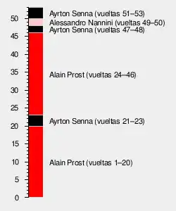 Alain Prost, 1:43.506 - Prost y Senna colisionaron entre ellos al tratar de adelantar el segundo al primero. Tras la colisión, el francés abandonó en el acto, pero el brasileño no se bajó del monoplaza y volvió a la pista saltándose una chicane por la escapatoria. Continuó en pista y ganó la carrera pero fue descalificado por esta acción dándole la victoria a Alessandro Nannini.