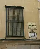 42.8159007, -1.644213 | En este lugar estuvo la sede del gremio de carpinteros y albañiles de Pamplona, desde 1375 hasta 1826, año perdió la titularidad del inmueble. En 1725 se lleva a cabo una reforma de entidad, disponiendo una fachada hacia el actual Paseo de Sarasate, un paraje que en esos años era parte de la Taconera. En 1727 se encarga a Matías de Asca, el maestro albañil que se encarga de la reforma, que realice en esta nueva fachada un nicho para colocar una imagen de San José, patrono de la hermandad[1].[15] La imagen de San José sigue modelos barrocos.[16] |