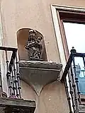 42.81760266122391, -1.6474854866912587 | En las cuentas presentadas por el prior del barrio de la Corregeria el 12 de abril de 1819 se informa del dinero utilizado para hacer un nicho nuevo a San Fermín que está colocado en el barrio, se paga también a un escultor para que haga un nuevo báculo pastoral y dos manos. Sin duda un antecedente de esta hornacina |