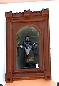 La imagen de San Francisco Javier es obra del siglo XX, y responde al nombre que, en honor del santo, le asignó a la calle el Ayuntamiento, en recuerdo de la peregrinación del 5 de marzo de 1886 al castillo de Javier, con ocasión del cólera que asolaba la ciudad.[20] | |