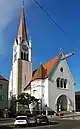![]() | 25= | 78,0[19] | Iglesia parroquial de Schwanenstadt (Pfarrkirche Schwanenstadt) | Schwanenstadt | 1900 | 1902 | Obra neogótica según proyecto de Paul Hochegger y ejecución del arquitecto Matthäus Schlager. | |