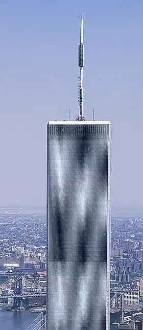 ![]() La Torre Norte del World Trade Center (WTC1), fotografiada en el verano de 2001. | ||