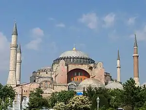 El característico perfil multipantalla de la bizantina Hagia Sophia, la primera pechina en la historia, ha dado forma a la arquitectura de la iglesia ortodoxa oriental y a la arquitectura islámica por igual.[1]