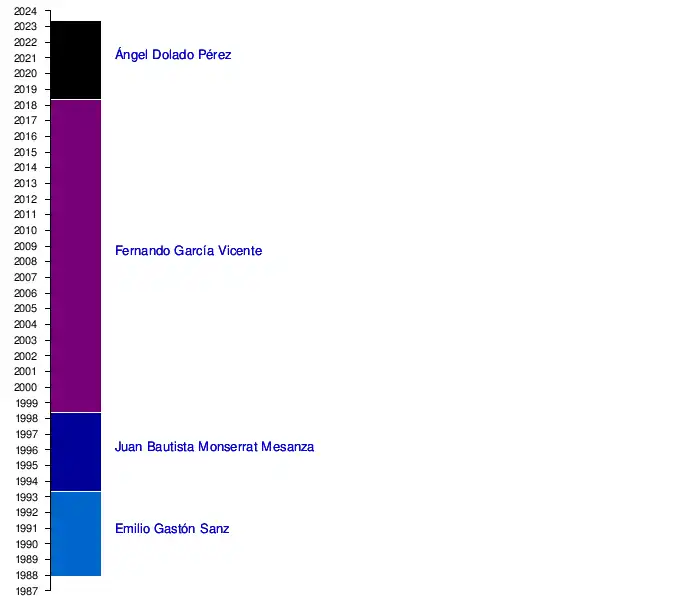 | 70 | Ángel Dolado | 2018 | 2023 | Tras cumplirse su mandato, fue sustituido en funciones por Javier Hernández hasta el nombramiento de su sucesora. |