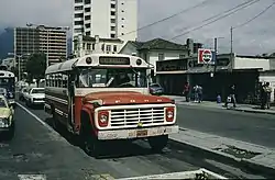 ![]() Autobuses de Quito, en la avenida Patria y 10 de Agosto. | ||