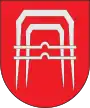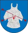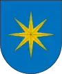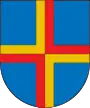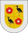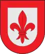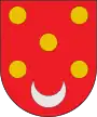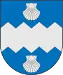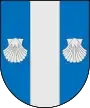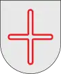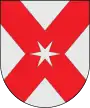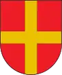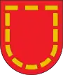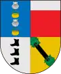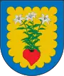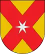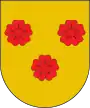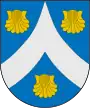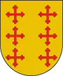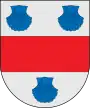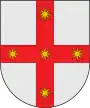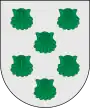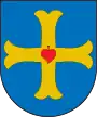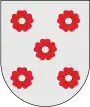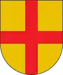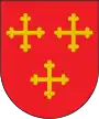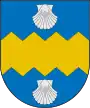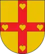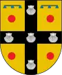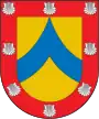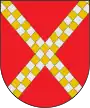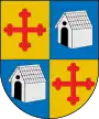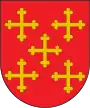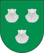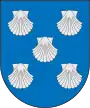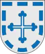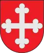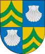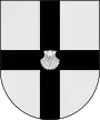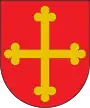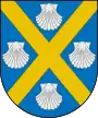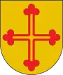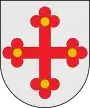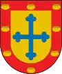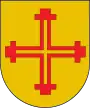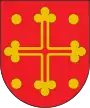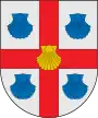 De gules, cruz trebolada de oro, cantonadas de cuatro veneras de plata. |