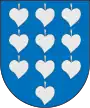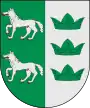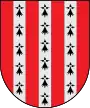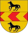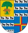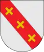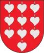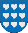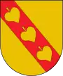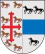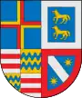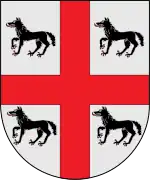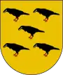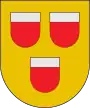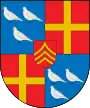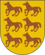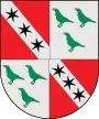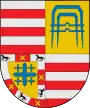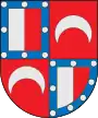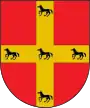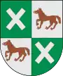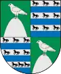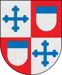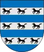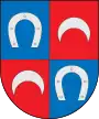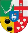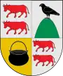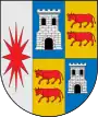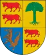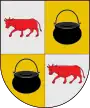 Cuartelado: 1 y 4 de oro, dos vacas de gules; 2 de azul, árbol de plata, 3 de azul, hidra de tres cabezas de plata. |