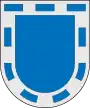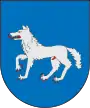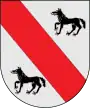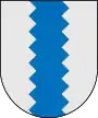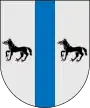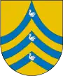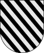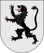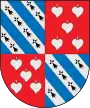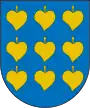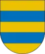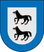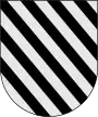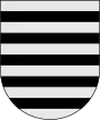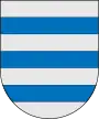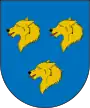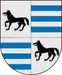 De azul, tres fajas de plata, cargadas de nueve lobos de sable 3, 3, 3. |