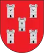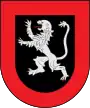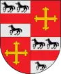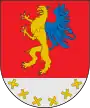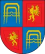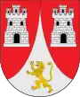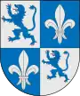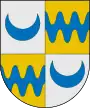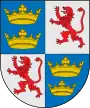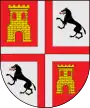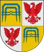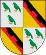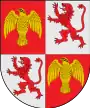 Cuartelado: 1 y 4 de gules, halcón de oro; 2 y 3º de plata, león de gules. |