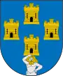 - En otros: 1 y 4 de plata, torre al natural; 2 y 3 de gules, lobo al natural.