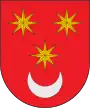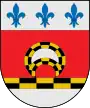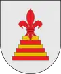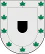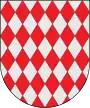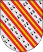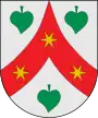 De gules, carbunclo cerrado pomelado de oro, una esmeralda verde (en forma de losange) en abismo. Timbrado de una corona de tres florones. |