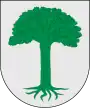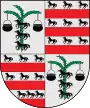 De oro, árbol verde, una loba de sable que amamanta a dos lobeznos, de su color, brochante. |