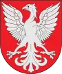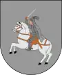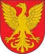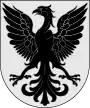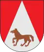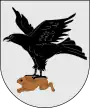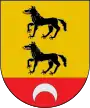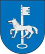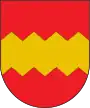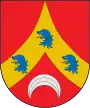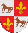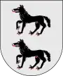 De oro, dos lobos de sable, bordura angrelada de gules. |