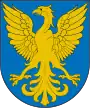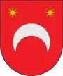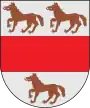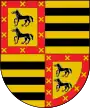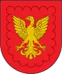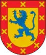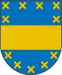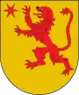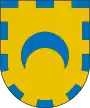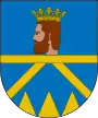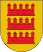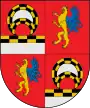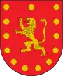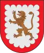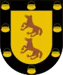 De oro, dos lobos de sable; bordura de gules con dieciséis aspas de oro. |