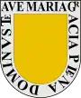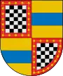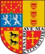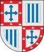 Cuartelado: 1 cortado: a. de gules, medio carbunclo, cerrado pomelado de oro naciente de la partición; b. de azul, dos leones de plata uno junto a otro; 2 de oro, tres calderas de gules, ceñidas de dos de oro, en pal; 3 de oro, dos lobos de sable, bordura de gules con doce aspas de oro; 4 de gules, cruz treboladas de oro, bordura de plata con la divisa: AVE MARÍA GRATIA PLENA DO... |
