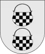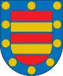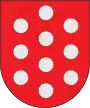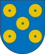 De sable, veintiún bezantes de plata en palo y en aspa. |