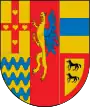Cuartelado: 1 y 4 de Navarra; 2 y 3 losangeado de oro y azul. |