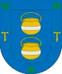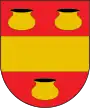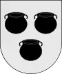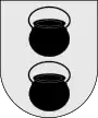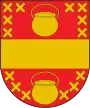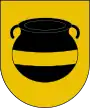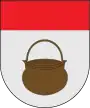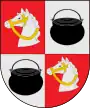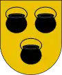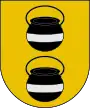 Cuartelado: 1 y 4 de oro, tres palos de gules; 2 y 3 de plata, caldera de sable. |