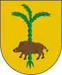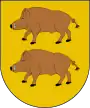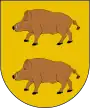 Cuartelado: 1 y 4 de oro, árbol verde, jabalí al natural brochante; 2 y 3 de gules, faja de oro. |