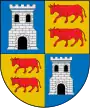 Cuartelado: 1 y 4 de azul, torre de plata, 2 y 3 de oro, dos vacas de gules. [‘‘n’‘ 9] |