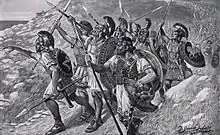- Epigrama, un sencillo dístico elegíaco, de Simónides de Ceos sobre los caídos en la Batalla de las Termópilas.