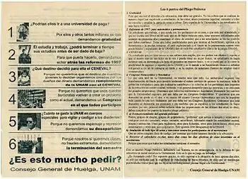 Volante explicando los seis puntos del pliego petitorio del CGH.