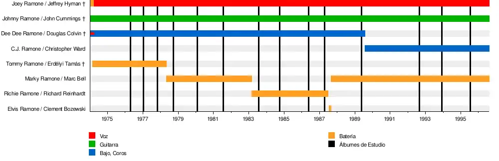 Tabla con todas las formaciones que ha presentado la banda de punk estadounidense Ramones desde su nacimiento en 1974 hasta su disolución en 1996.