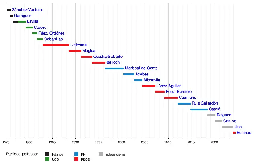 | 29 de septiembre de 2014 | 7 de junio de 2018 | Rafael Catalá Polo | PP | ![]() | |