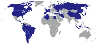 Ecuador cuenta con varias embajadas de un total de 39 países y con varios consulados en gran parte del país, la mayor parte pertenecientes a países de Latinoamérica como Colombia, Perú o también de países europeos como España dada la presencia de ciudadanos de estos países en el país o en esos países. Además se prevé la apertura de nuevas embajadas en los próximos meses. (en esta lista se incluyen consulados honorarios)