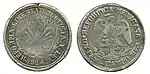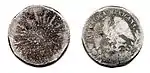 8 RVariable.[37]Variable.[38]Ag+Cu"REPÚBLICA MEXICANA" y escudo. Contramarca: "G.C."Gorro frigio de la libertad, valor facial, ceca, año de acuñación, ensayador y ley.Irregular.Sin fecha.[39]Culiacán.[40]Sinaloa.