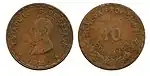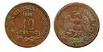 10 ¢?27,00-28,50Cu"ESTADOS UNIDOS MEXICANOS" y escudo.[16]Monograma con año de acuñación.Liso.1915.?Guerrero.