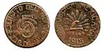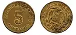5 ¢?21,00CuEscudo nacional.Denominación.?1915.Chiconcuatla.Puebla.