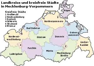 Bad Doberan | Demmin | Güstrow | Ludwigslust | Mecklemburgo-Strelitz | Mecklemburgo Noroccidental | Müritz | Parchim