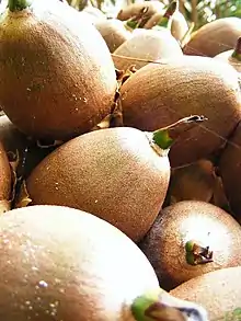 | Nuez maya | Brosimum alicastrum | Semilla de Drupa | La parte carnosa de la drupa también es comestible. | ![]() Frutos maduros del Brosimum alicastrum recogidos en Belice. |