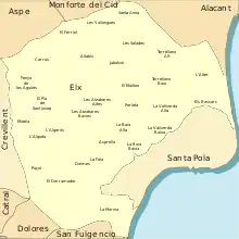 Desde tiempos de la Reconquista por parte del Rey Jaime I, el término municipal de Elche se divide en partidas rurales, sus límites y número han ido variando con el paso de los años. Actualmente, el Campo de Elche se divide en treinta partidas, y estas a su vez se dividen en polígonos numerados que ayudan a situar las parcelas y viviendas de sus habitantes. Algunas de las partidas contienen un núcleo urbano principal al que se le llama pedanía, otras, por el contrario, solamente disponen de urbanizaciones o asentamientos mucho menos poblados.