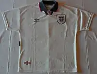 Camiseta de Inglaterra confeccionada por Umbro.