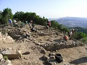 En él se han encontrado restos arqueológicos de mediados del siglo VII a. C., que ya en 1931 Serra Ráfols dio a conocer, lo que provocó expolios clandestinos. Las siguientes prospecciones, a partir de 1985, han permitido establecer que la extensión total del poblado es de 5000 m² y que se encontraba rodeado por una muralla. Parece que fue abandonado o destruido a principios del siglo II a. C. a partir del cambio de las condiciones económicas y políticas y de las campañas de Catón y sus seguidores.[10]