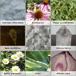 | Natrum muriaticum[8] | Sal de cocina | Natrum mur; sal culinaria | diversos usos crónicos, irritable, sensible, disgustos consolación | 6c a 10M |
