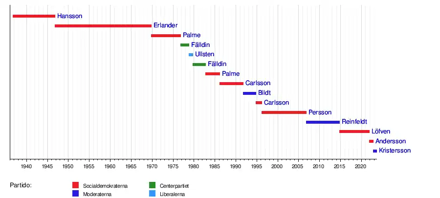 Ulf KristerssonMagdalena AnderssonStefan LöfvenFredrik ReinfeldtGöran PerssonIngvar CarlssonCarl BildtIngvar CarlssonOlof PalmeThorbjörn FälldinOla UllstenThorbjörn FälldinOlof PalmeTage ErlanderPer Albin Hansson